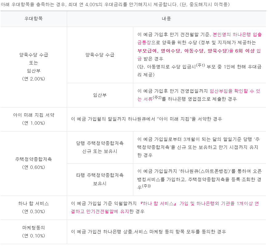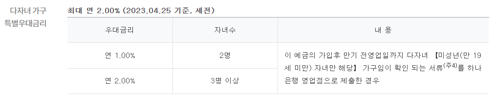 1) 다자녀 우대이율: 첫째 4.0%, 둘째 5.0%, 셋째 이상 6.0%