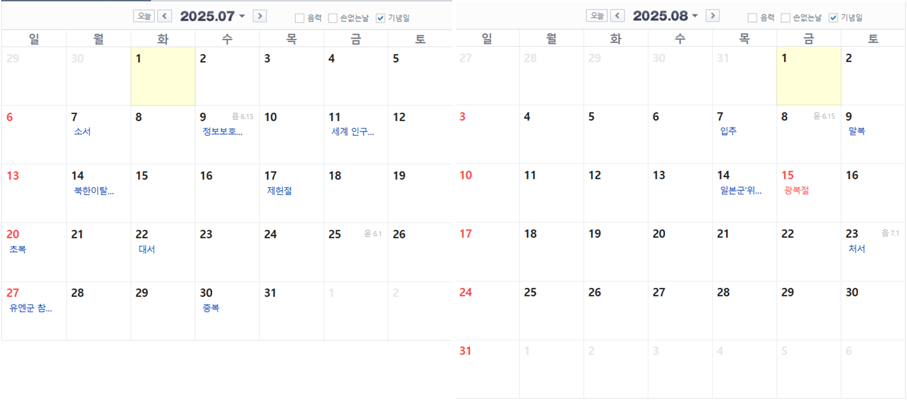 매월 공휴일 일정을 감안하여, 연차를 사용하면 좋은 날을 살펴보겠습니다.