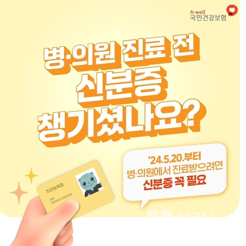 오는 5월 20일부터, 병의원 진료 시 신분증이나 전자서명을 통해 본인 확인을 해야만 건강보험 혜택을 받을 수 있는 신분증 의무화가 시행됩니다.