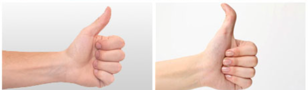 좌측처럼 엄지손가락이 젖혀지지 않으면 우성인자, 젖혀지는 경우는 열성인자 입니다.